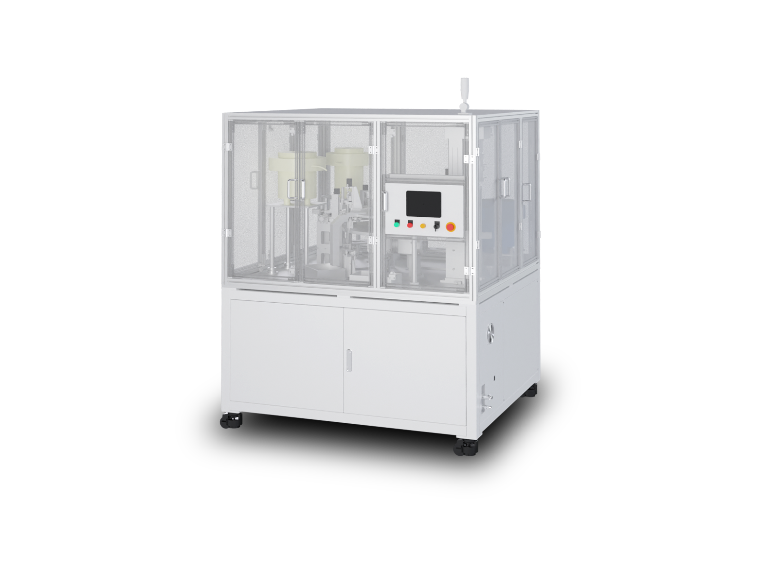 以振動(dòng)盤自動(dòng)上料為基礎(chǔ),集成螺釘彈簧入套筒機(jī)構(gòu),通過轉(zhuǎn)盤載具與快換治具實(shí)現(xiàn)多規(guī)格工件高效流轉(zhuǎn)。配備對(duì)射光線傳感器,實(shí)時(shí)完成上料有無、到位狀態(tài)及裝配精度檢測(cè),結(jié)合鉚壓裝配功能,達(dá)成 1000PCS / 小時(shí)穩(wěn)定產(chǎn)能,兼顧自動(dòng)化效率與裝配可靠性,適配中小批量多品類螺絲裝配場(chǎng)景。
