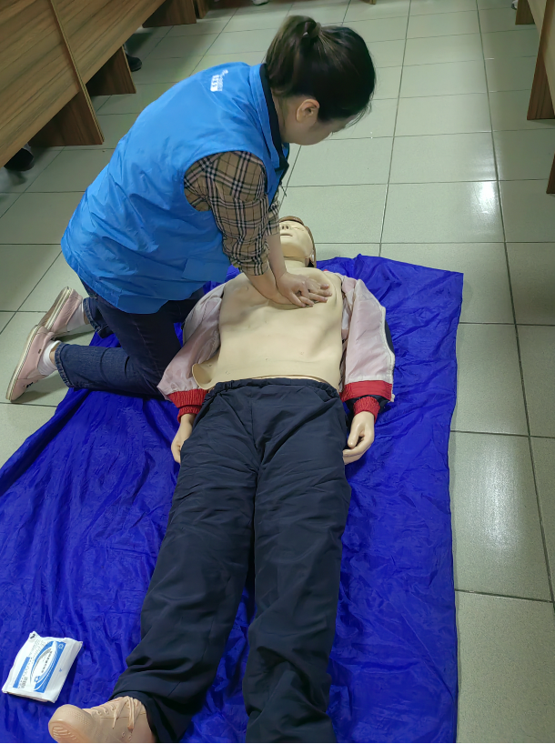采用線下培訓(xùn)和實操演練相結(jié)合的形式,培訓(xùn)心肺復(fù)蘇的定義、適用范圍、操作流程、注意事項等施救知識及應(yīng)急處置實操內(nèi)容。培訓(xùn)中,社區(qū)專業(yè)全科主管護(hù)師通過講解現(xiàn)實案例以及人體模型示范的方式,讓大家更為真切、迅速了解應(yīng)急救護(hù)的有關(guān)知識和技巧,并就如何正確心肺復(fù)蘇的操作流程進(jìn)行了指導(dǎo)。